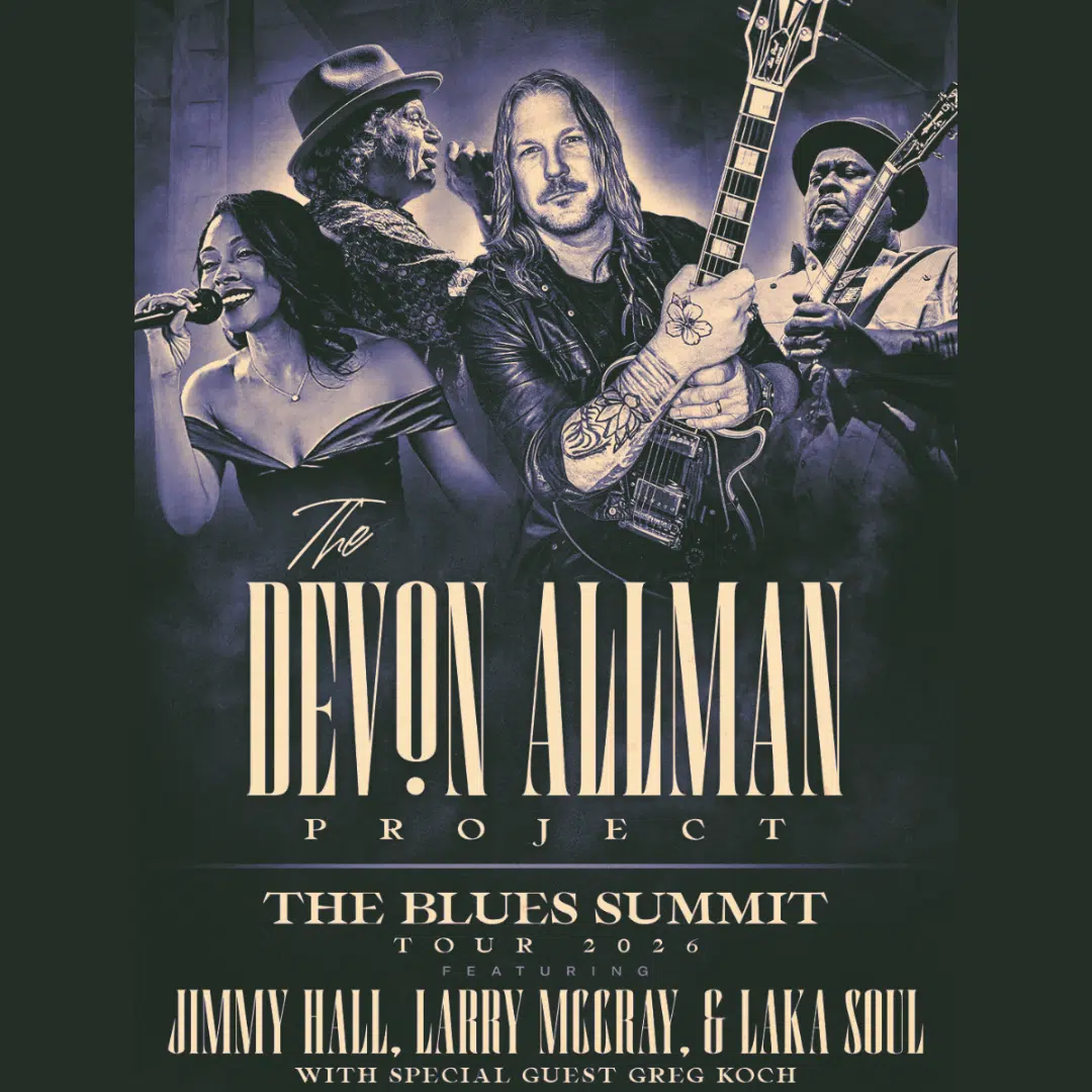 Don’t miss Devon Allman’s Blues Summit, featuring a powerhouse gathering of blues legends including Wet Willie’s Jimmy Hall, and the great Larry McCray, and St. Louis RnB powerhouse Laka Soul. Carrying the torch of his father’s legacy, Devon will lead an all-star band through a high-energy night of blues, soul, and classic songs from the Allman Brother’s catalog.